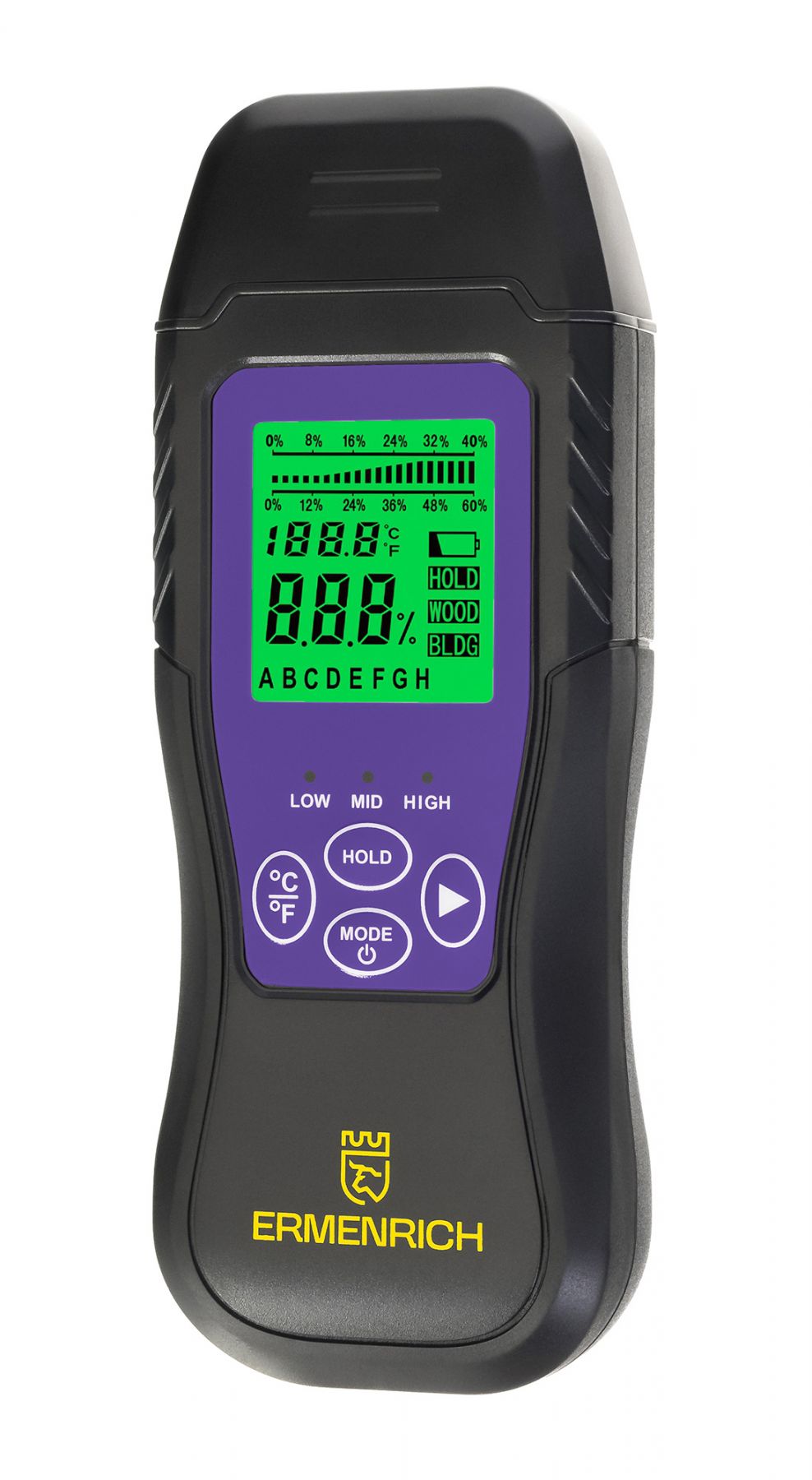 Влагомер (датчик влажности) Ermenrich Wett MW30 значительно упрощает выбор качественных материалов для столярных, строительных и ремонтных работ, а также помогает в контроле качества на производстве. Этот прибор измеряет влажность разных материалов: досок, картона, бумаги, штукатурки, бетона, строительного раствора. Работает по контактной технологии, также может измерять температуру в °C и °F.