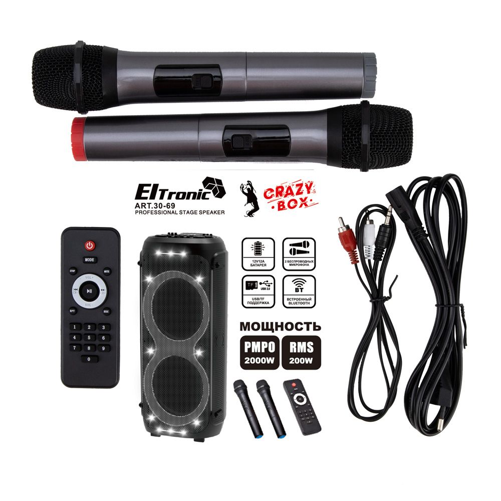 Колонка Eltronic 30-69 CRAZY BOX 2000 200Вт динамик 2шт/15" с 2мя микрофонами