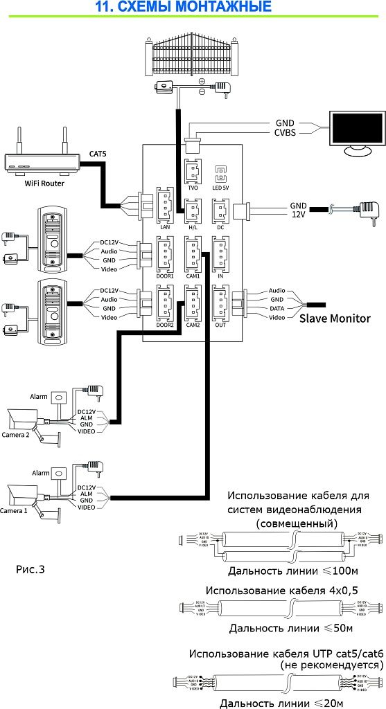 - Возможности подключения: До 2х вызывных панелей, до 2х видеокамер, до 6и мониторов*