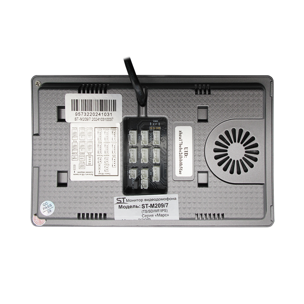 Домофон ST-M209/7 (TS/SD/WF/IPS) Серый, Дисплей: 7", Разрешение: 1024*600, Поддерживаемые стандарты видео: CVBS/TVI/CVI/AHD(720Р/1080P) , Количество подключаемых панелей: 2, Количество подключаемых камер: 2, Количество подключаемых мониторов: 6, Интерком: Да, Режим «не беспокоить»: Да, Запись фото/видео: Да, Слот под SD карту: Да (до 1 Тб(класс 10)), Количество мелодий звонка : 10, Автоответчик: Да(с SD карт.), Функция фоторамки: Да(с SD карт.), Функция распознавания лиц: Да, Возможности подключения: До 2х вызывных панелей, до 2х видеокамер, до 6и мониторов*, Мобильное приложение: Smart Life/Tuya Smart, Напряжение питания: АС 100-240В (встроенный БП 12V1A), Способ монтажа : Накладной (монтажная пластина), Рабочая температура : -10°С...+60°С, Мах. коммутируемые ток и напряжение для замка (ворота): 30V/1A, Пластик, 175,5х122,5х21,5 мм.