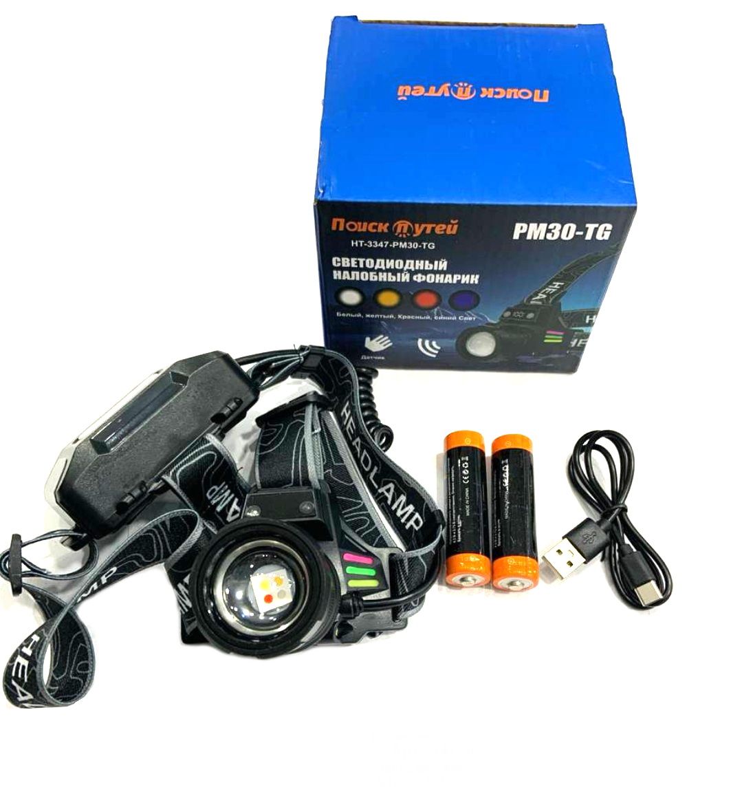 Налобный фонарь HT-3347-PM30-TG Type-C (4 диода, 2 АКБ) с датчиком движения