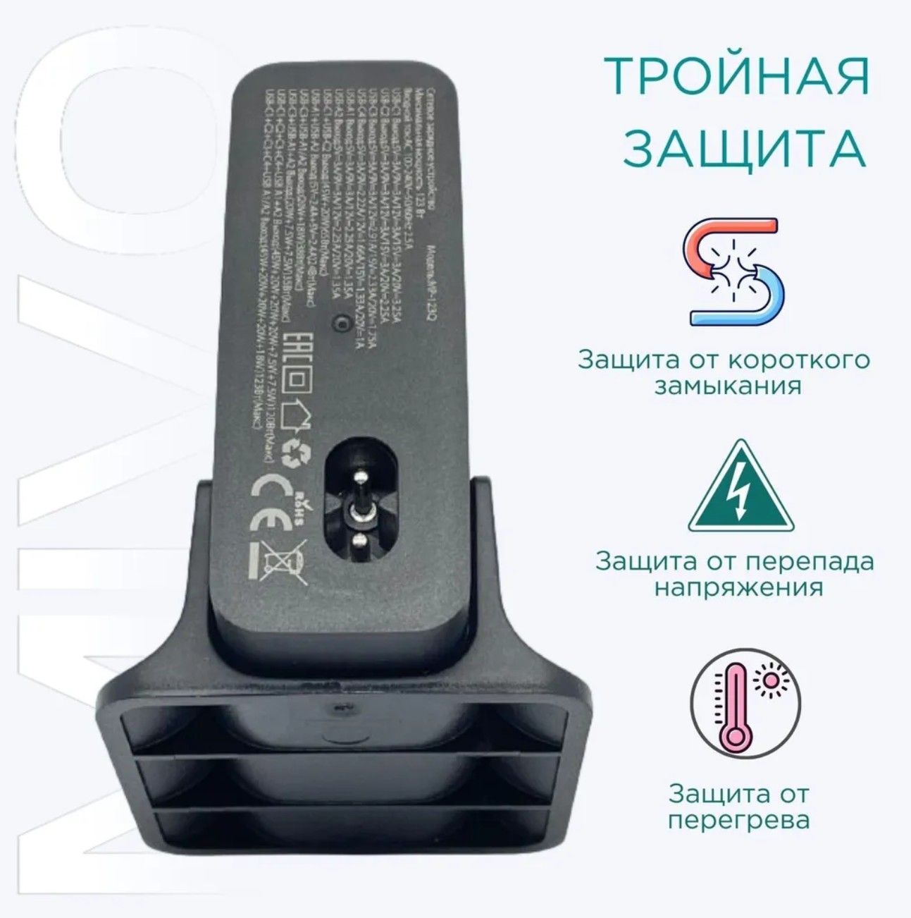 Зарядная станция Mivo MP-123Q снабжена четырьмя разъемами USB Type-C и двумя разъемами USB-A, это позволяет одновременно заряжать до 6 гаджетов. Все разъемы поддерживают технологию быстрой зарядки: Power Delivery и Quick Charge 4.0. Суммарная мощность устройства 123Вт. Адаптер подходит для подключения бытовых приборов и зарядки любого современного электронного устройства поддерживающего зарядку через USB или Type-C кабель. Заряжайте ваши планшеты, смартфоны, беспроводные наушники, повербанки, часы, фитнес браслеты, колонки, фотоаппараты и прочие гаджеты. Настольная зарядка снабжена системами защиты от перегрузки по току, перегрева и короткого замыкания. Длинна провода 1.5 метра, корпус зарядного устройства сделан из качественного, огнеупорного ABS пластика, не имеет постороннего запаха и презентабельно выглядит.