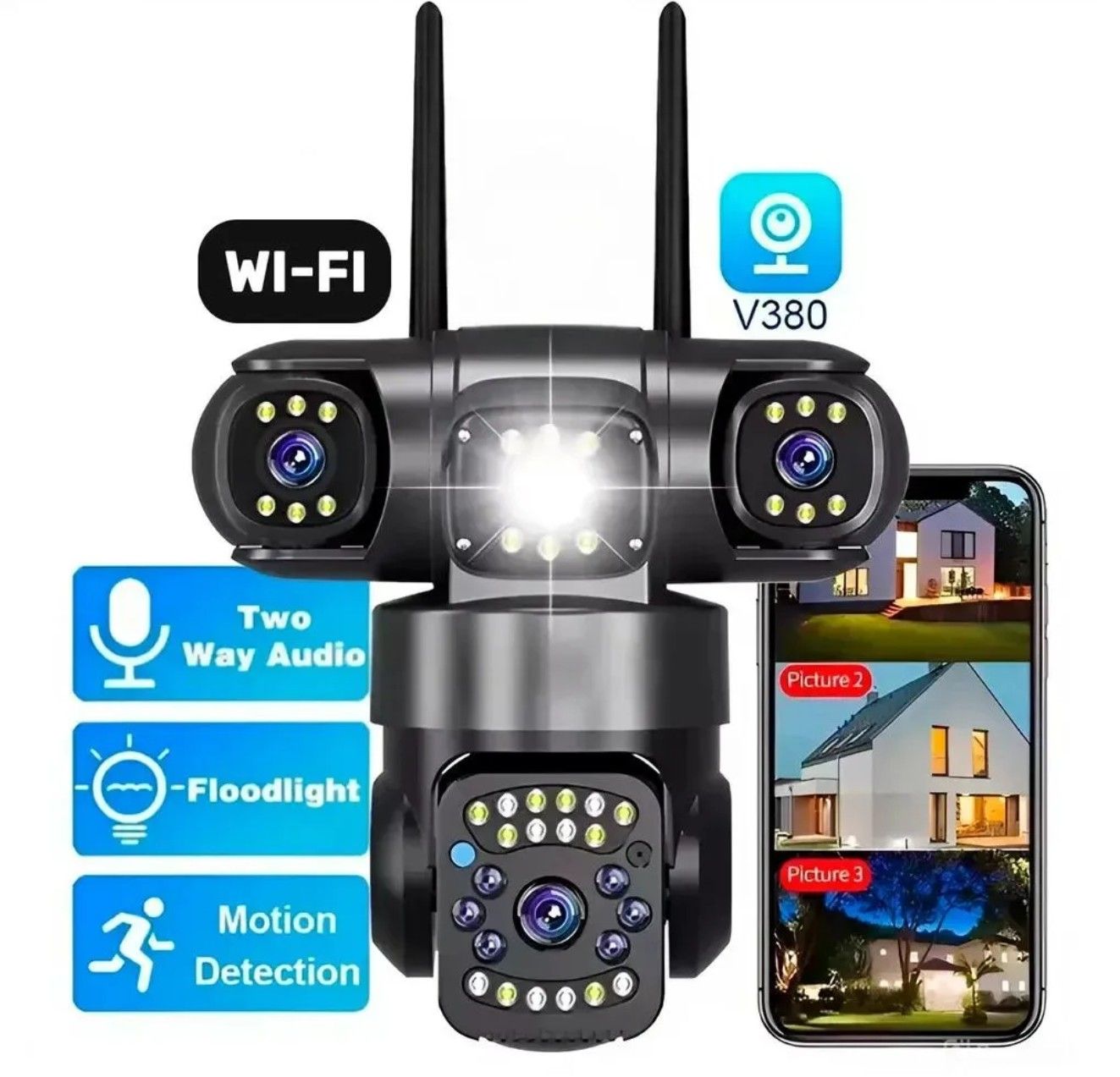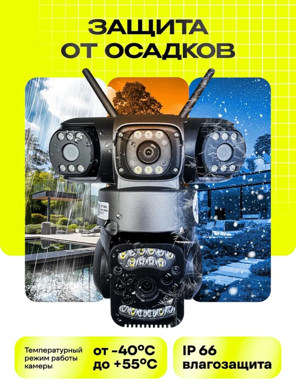 Уличная поворотная камера видеонаблюдения - это идеальное решение для обеспечения безопасности вашего дома или офиса. Эта камера оснащена четырьмя объективами, что позволяет вам контролировать большую территорию без необходимости перемещения камеры.