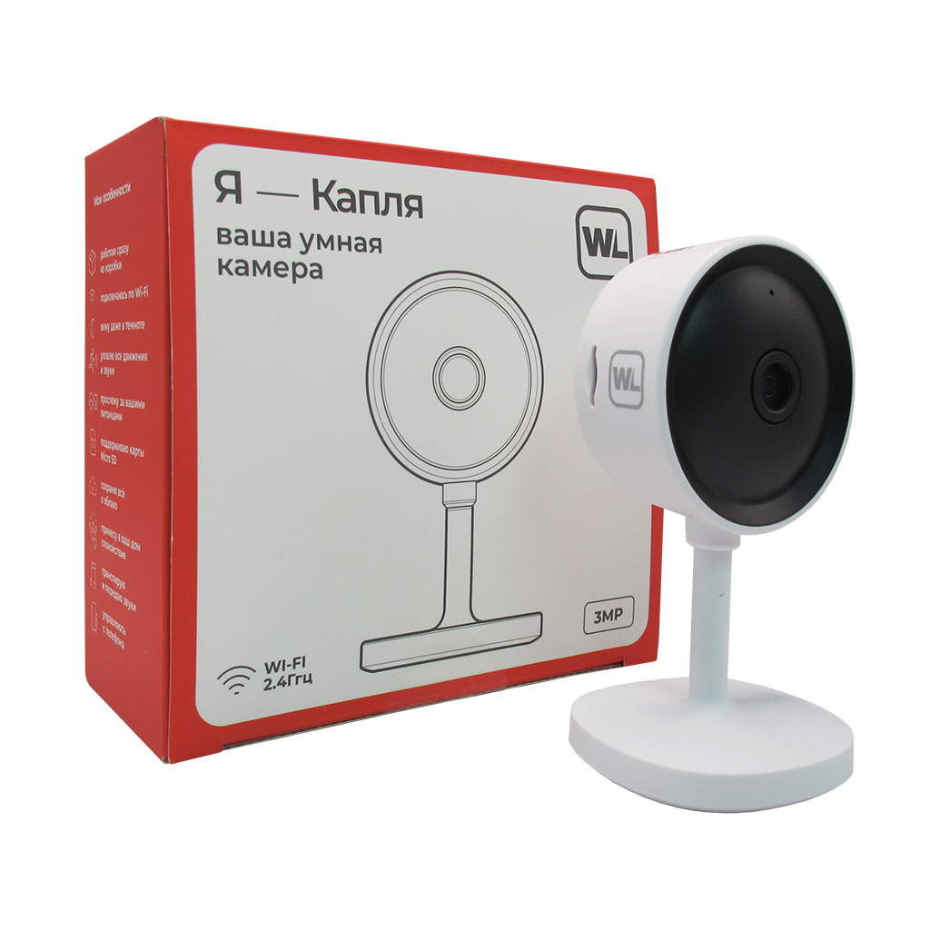 Видеокамера IP WL-K304 Wi-Fi 3Мп Капля, Бело-черный, Купольная, Фокусн. расст.: 3.6мм @F2.0 (Гор.85°/Верт.50°/Диаг.100°), Сенсор: 1/2.8'' CMOS, Дальн. ИК подсветки: не более 10 м, Светочувствит. (мин. освещ.): 0.1лк @F2.0, (ИК выкл.), Кодек сжатия: H.264, Кодек сжатия аудио: G.711U, Облачное хранение: Есть, Налич. слота для SD (типы поддерж.карт): MicroSD Class 10 и выше , Макс. объем SD: 256 Гб, Напряжен. питания: 5В/1А, Встр. микр./динамик: есть/есть, Кол-во к/с: 20 к/с, Материал корпуса: Пластик.