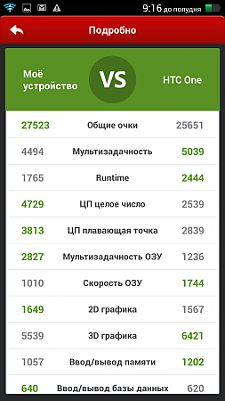 Первый тест мы провели в AnTuTu Benchmark, где наш Twinovo продемонстрировал очень впечатляющие результаты! Смартфон набрал ~27,5 тысяч! За все тестирования этот показатель не падал ниже 27 000, в среднем 27000-27500.