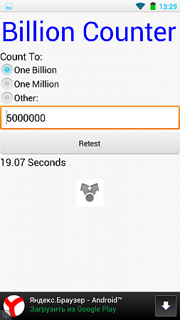 Тестер Billion Counter, демонстрирующий производительность своеобразным образом, а именно считающий за какое время система посчитает до одного биллиона/миллиона итд. продемонстрировал нам следующее: