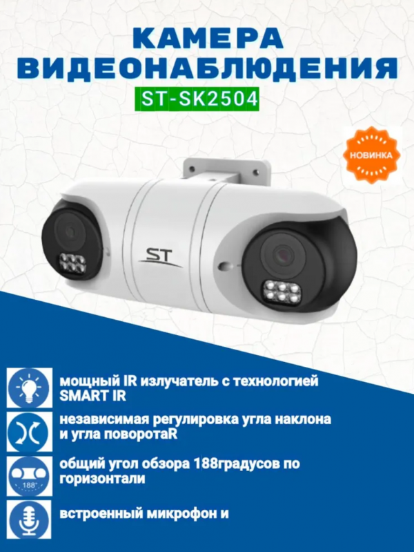 Камера видеонаблюдения ST-SK2504 двухсенсорная - это устройство, оснащенное двумя сенсорами, которые позволяют одновременно записывать видео с двух разных ракурсов или областей. Это позволяет обеспечить более широкий обзор и повысить эффективность наблюдения.