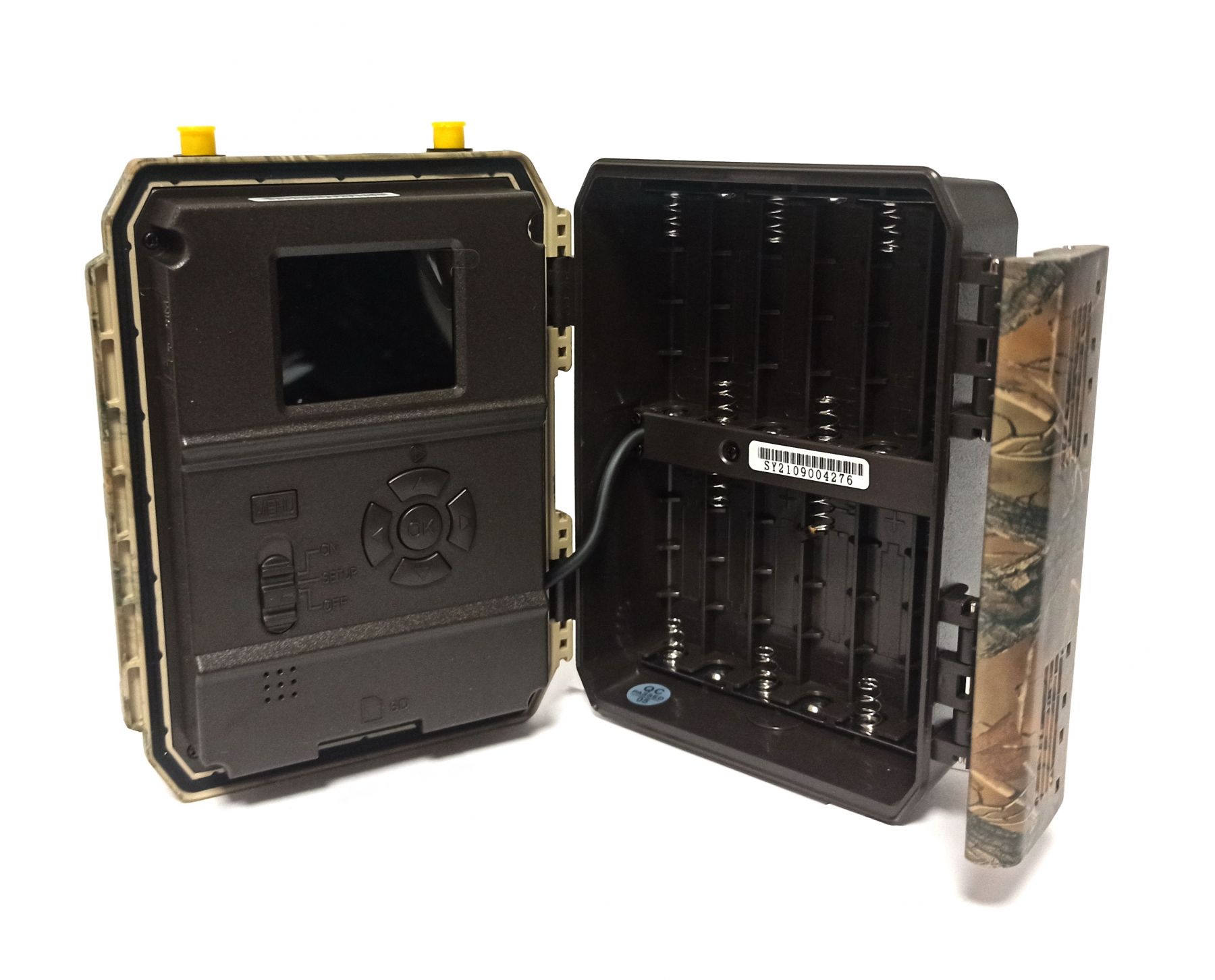- Работает от 12 батареек, аккумулятора или солнечной батареи. Для длительной автономной работы необходимо 12 батареек типа АА. Также камеру можно подключить к внешнему аккумулятору 12 В или солнечной батарее.