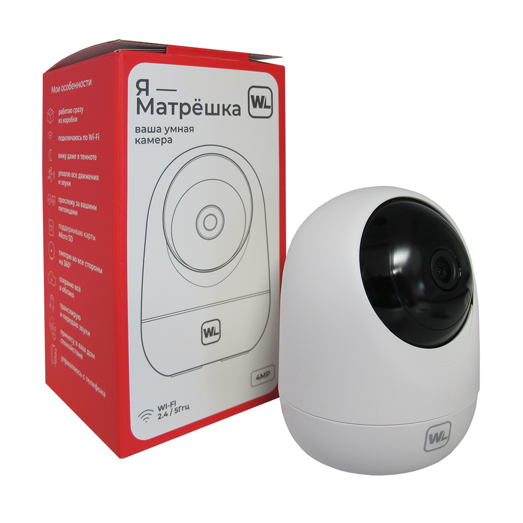 Видеокамера IP WL-K402 Wi-Fi 4Мп Матрешка, Белый, Поворотная, Фокусн. расст.: 3.6мм @F2.0 (Гор.85°/Верт.50°/Диаг.100°), Сенсор: 1/3'' CMOS, Дальн. ИК подсветки: не более 10 м, Светочувствит. (мин. освещ.): 0.1лк @F2.0, (ИК выкл.) , Кодек сжатия: H.264 , Кодек сжатия аудио: G.711U, Дополнит. возможности: Bluetooth, Облачное хранение: Есть, Налич. слота для SD (типы поддерж.карт): MicroSD Class 10 и выше , Макс. объем SD: 256 Гб, Напряжен. питания: 5В/1А, Встр. микр./динамик: есть/есть, Кол-во к/с: 20 к/с, Материал корпуса: Пластик.
