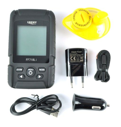 Эхолот Lucky FF718LiW – прибор, который придётся по душе любому рыбаку, желающему получить от рыбной ловли, как практическую пользу, так и удовольствие. Он легко обнаруживает рыбу, находящуюся на глубине. Тщательно сканирует её и окружения, определяя признаки, которые могут представлять интерес для пользователя, а именно: размер, температуру воды, местоположение, рельеф. Вся эта и другая не менее важная информация тут же отображается на жидкокристаллическом дисплее в виде символьных изображений, картинок, цифр, букв.