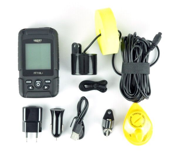 Эхолот Lucky FF718LiD – прибор, который придётся по душе любому рыбаку, желающему получить от рыбной ловли, как практическую пользу, так и удовольствие. Это – новая, усовершенствованная модель, грамотно сочетающая достоинства проводных и беспроводных устройств. Он легко обнаруживает рыбу, находящуюся на глубине. Тщательно сканирует её и окружения, определяя признаки, которые могут представлять интерес для пользователя, а именно: размер, температуру воды, местоположение, рельеф. Вся эта и другая не менее важная информация тут же отображается на жидкокристаллическом дисплее в виде символьных изображений, картинок, цифр, букв.