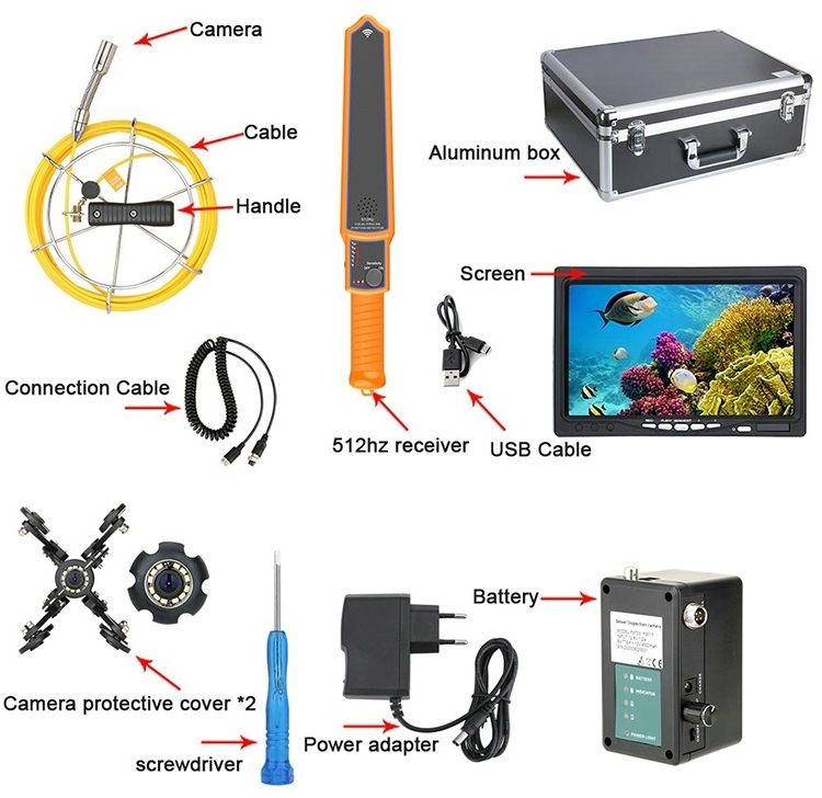 Особенностью комплекта является наличие устройства для поиска с земли места нахождения камеры. Для этого на камеру надевается специальный передатчик частотой 512 Гц и с помощью специальной приёмной рамки можно находясь на поверхности земли, определить где находится камера. Максимальное расстояние от передатчика до рамки 5 метров.