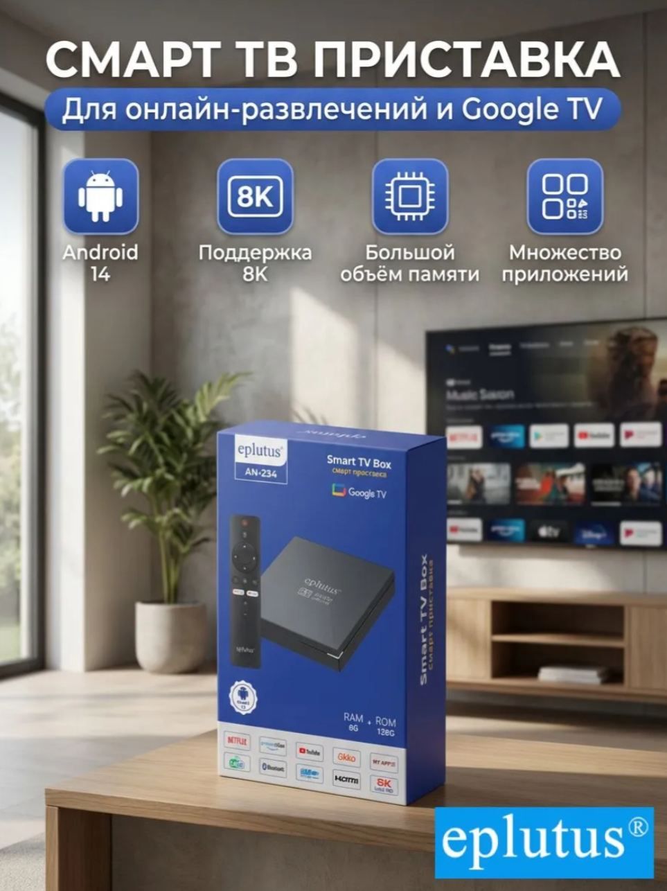 Смарт-приставка Eplutus AN-234 8K 6+128Gb