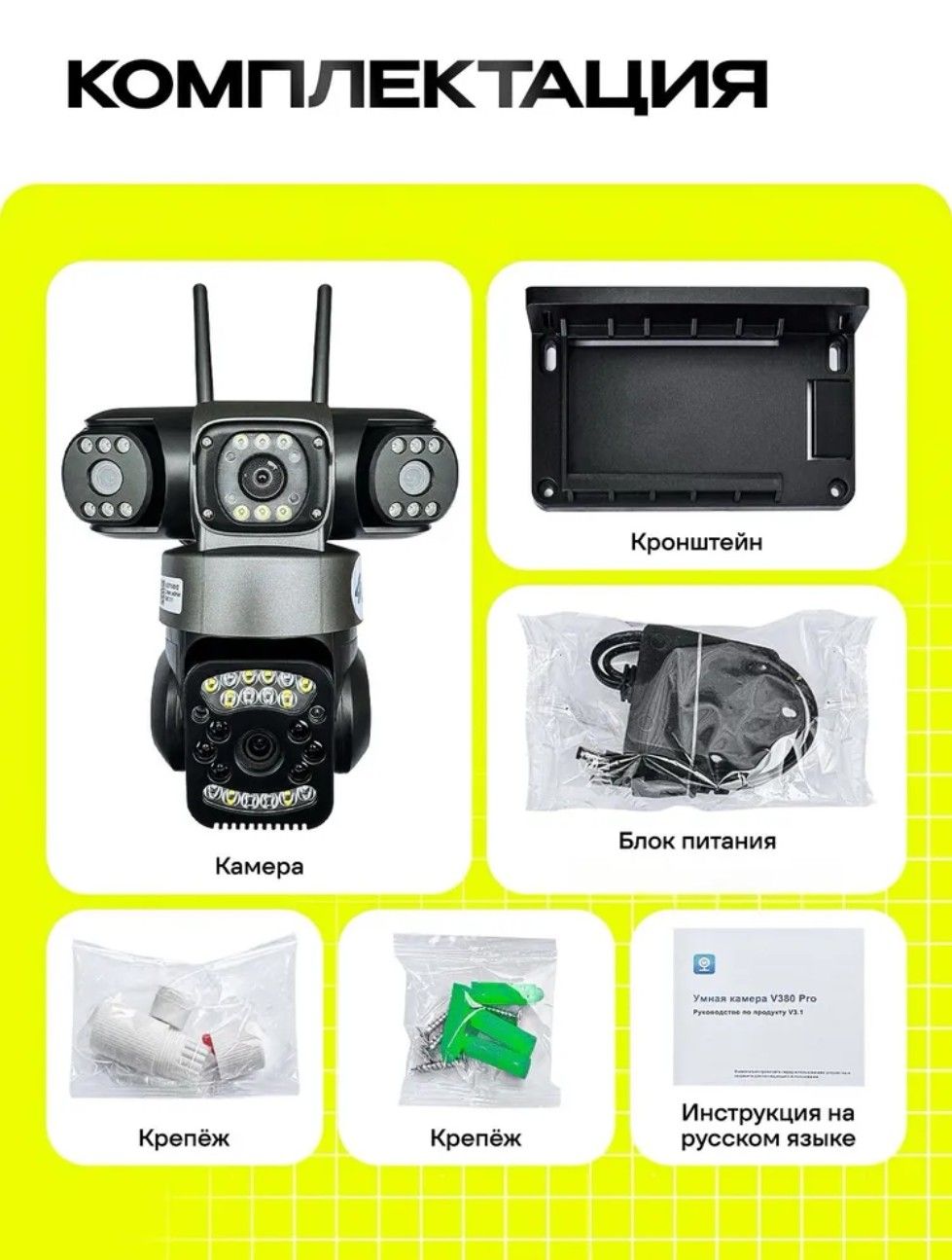 Уличная поворотная камера видеонаблюдения - это идеальное решение для обеспечения безопасности вашего дома или офиса. Эта камера оснащена четырьмя объективами, что позволяет вам контролировать большую территорию без необходимости перемещения камеры.