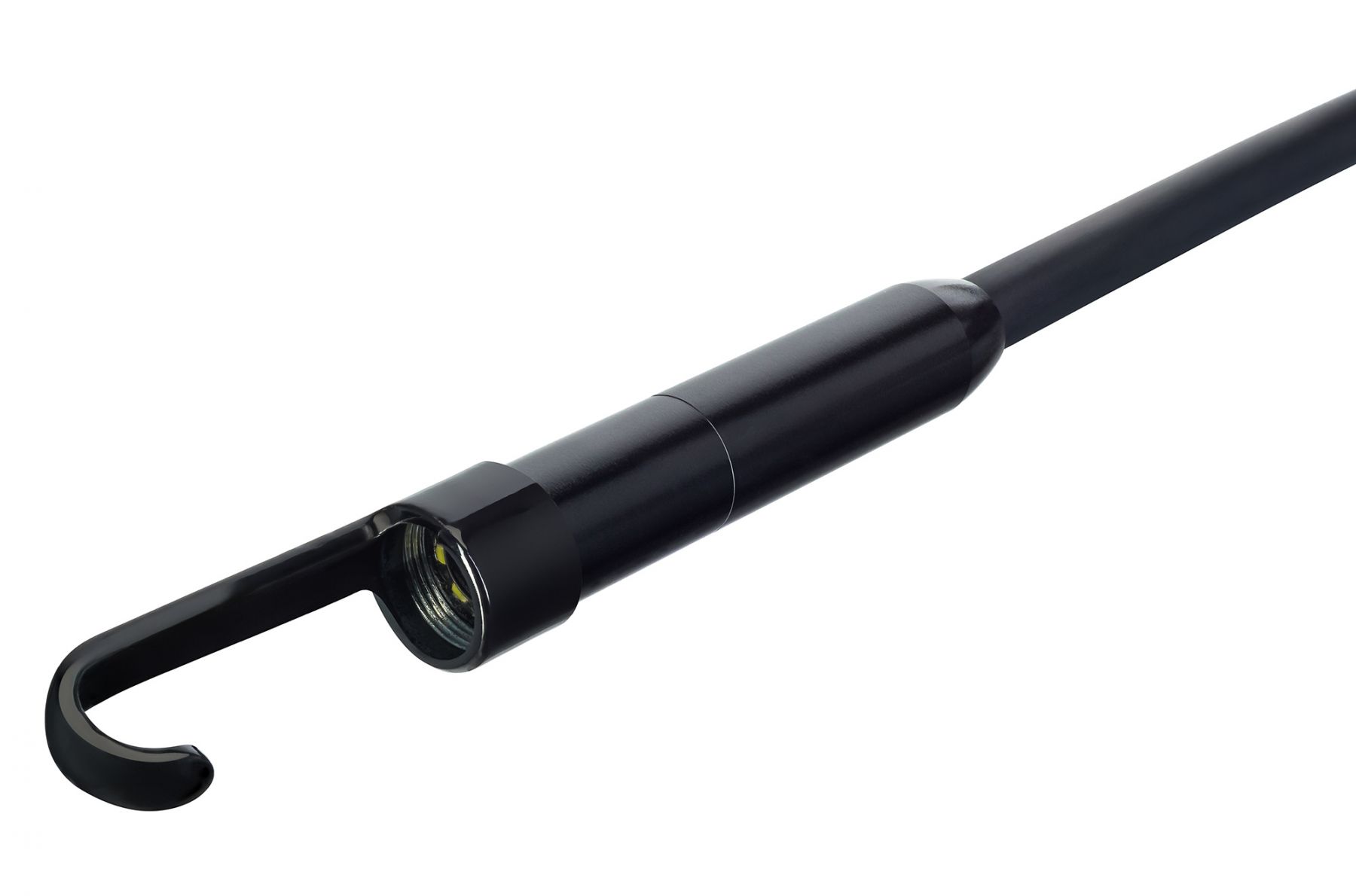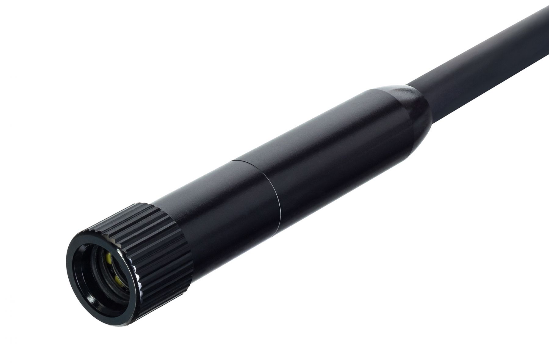 Эта модель поставляется с кабелем длиной 1 метр и имеет одну камеру прямого обзора. Камера позволяет вести наблюдение с углом 70° в любое время суток, подсветка осуществляется 8 светодиодами с регулируемой яркостью. На панели управления расположены кнопки навигации по меню, отдельная кнопка для съемки фото и видео, кнопка настройки яркости подсветки. Панель крепится на удобную нескользящую ручку.