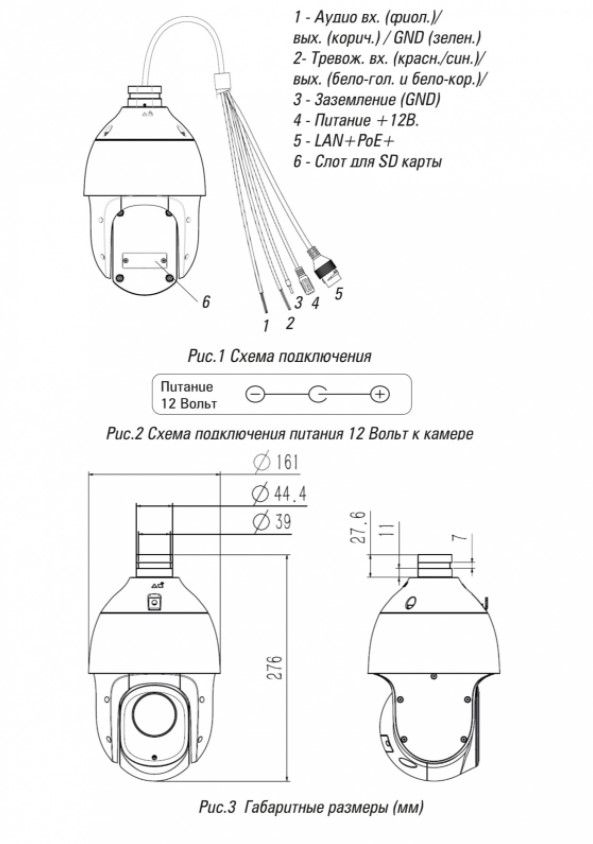 | Габариты видеокамеры,мм (d*l*k) | 161х276 |